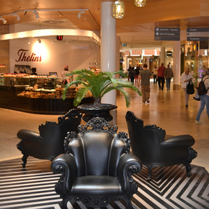 名作チェアとして名高い「プルーストの安楽椅子」を樹脂で作り、値段も本家の約1/10に押さえました。